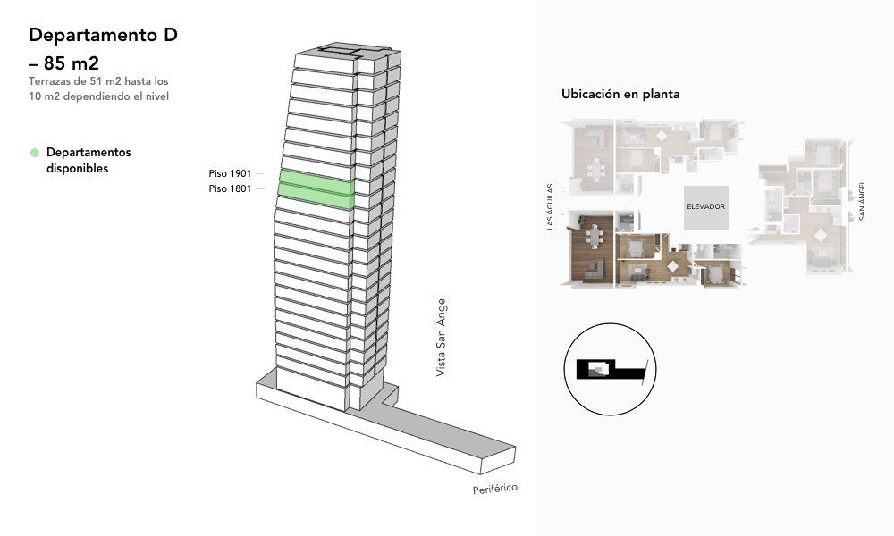Departamento D – 85 m2 + terraza de 10 m2 hasta 51 m2 dependiendo el nivel :2 disponibles